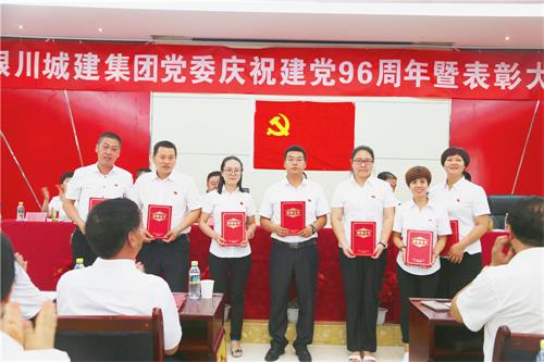 2017年7月1日下午,銀川城建集團(tuán)慶祝建黨96周年暨表彰大會隆重召開。集團(tuán)全體黨員及入黨積極分子130人參加了會議,全體黨員面對莊嚴(yán)的黨旗重溫了入黨誓詞。經(jīng)各基層支部評選,集團(tuán)黨委研究決定,對先進(jìn)黨支部,優(yōu)秀黨務(wù)工作者,優(yōu)秀共產(chǎn)黨員進(jìn)行了表彰。雷光新書記為全體黨員上了一節(jié)深刻的黨課,從黨的歷史講到黨建工作理論,結(jié)合企業(yè)實際,對廣大黨員提出了嚴(yán)厲的要求,為下階段各支部工作明確了具體任務(wù)。